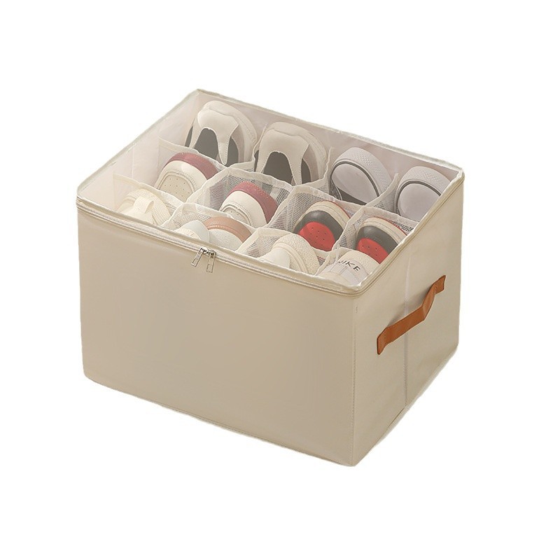 Fabric Shoe Organizer Foldable Shoe Storage Bin With Clear Lid Shoe Storage Box Adjustable Dividers For Sneakers Loafers Sandals