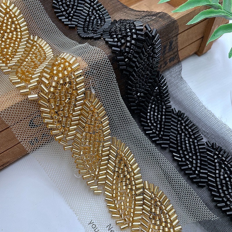 New Leaf Machine Embroidery Lace Heavy Work Hand Nail Bead Decorative Ribbon Clothing Headdress Accessories Factory Direct Lace