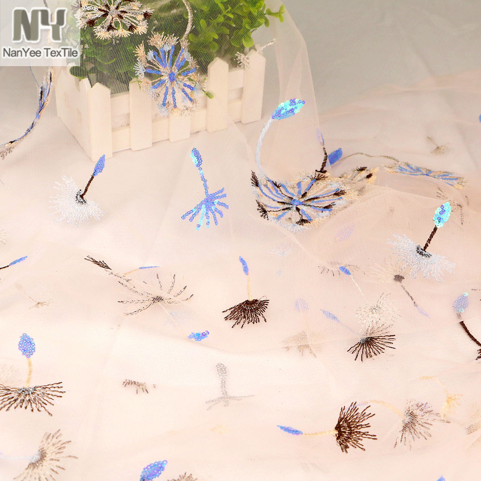 Nanyee Textile Cheap Baby Pink Embroidered Lace With Sequins