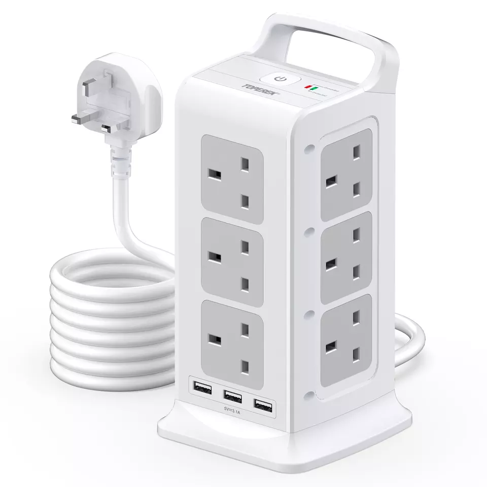 High Quality Cube Tower Socket 12 Uk Outlets 3 Usb Port 1.5m Extension Cords Electric Multi-function Smart Plug For Office Home