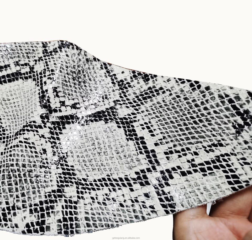 100% Cowhide Naturally Cow Skin Hot Stamping Python Texture Genuine Leather For Bag Shoes