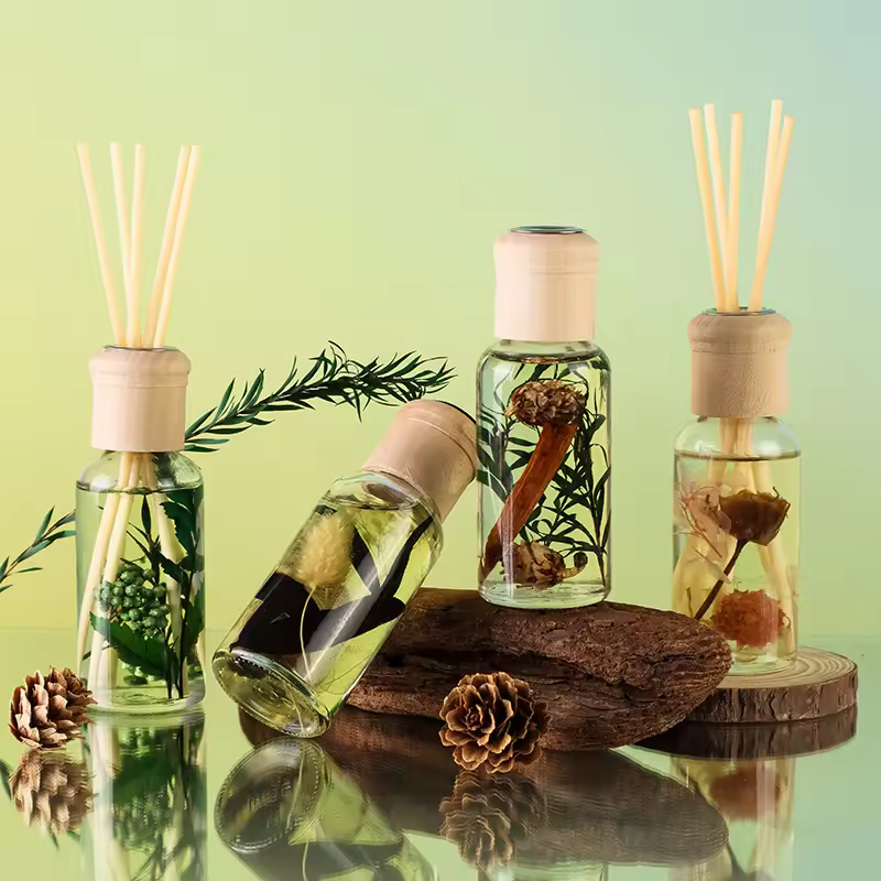 Private Label 50ml Glass Reed Aroma Diffuser Home Decoration Luxury Natural Dried Flower Air Freshener Aromatherapy Gift Box