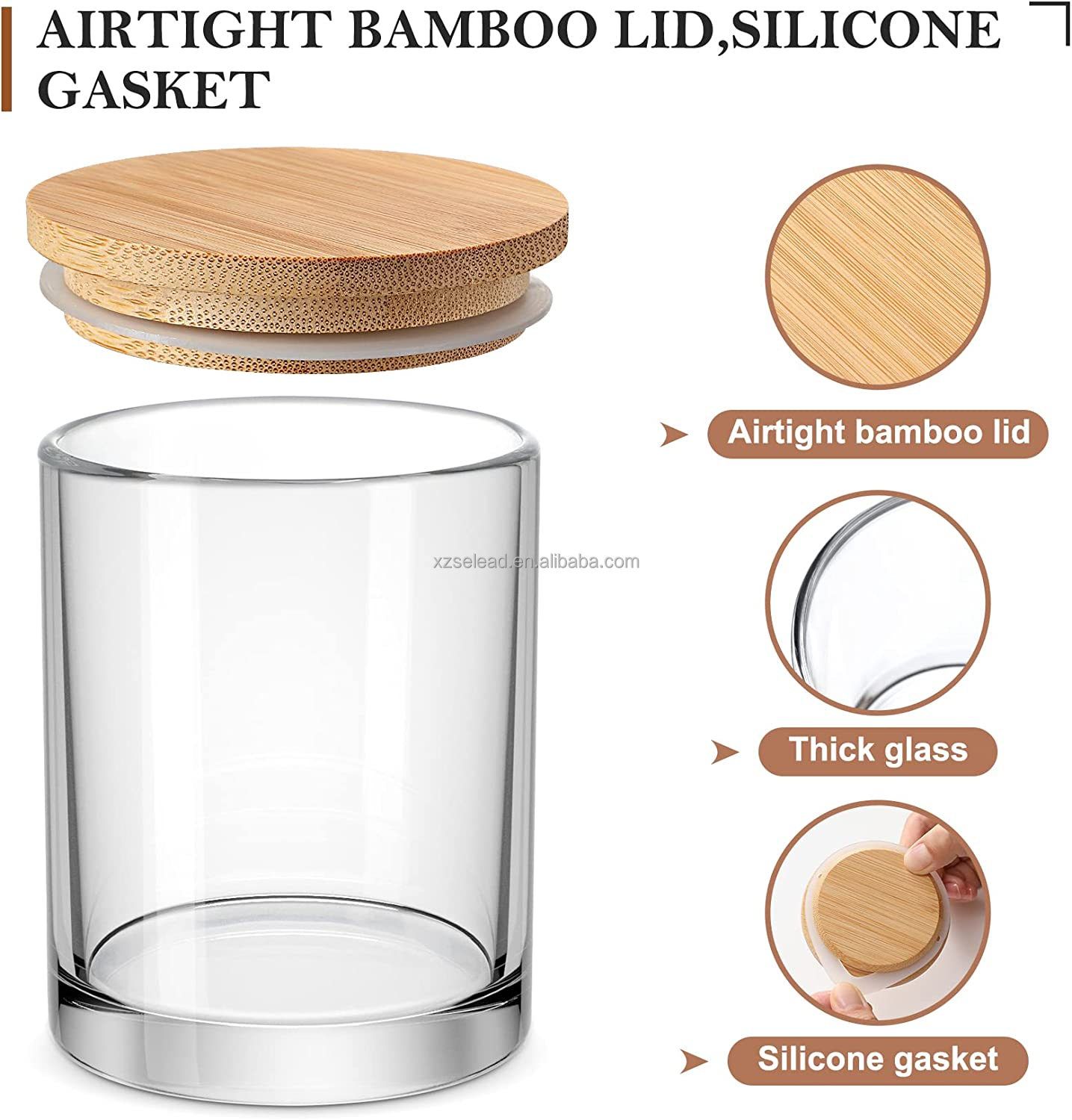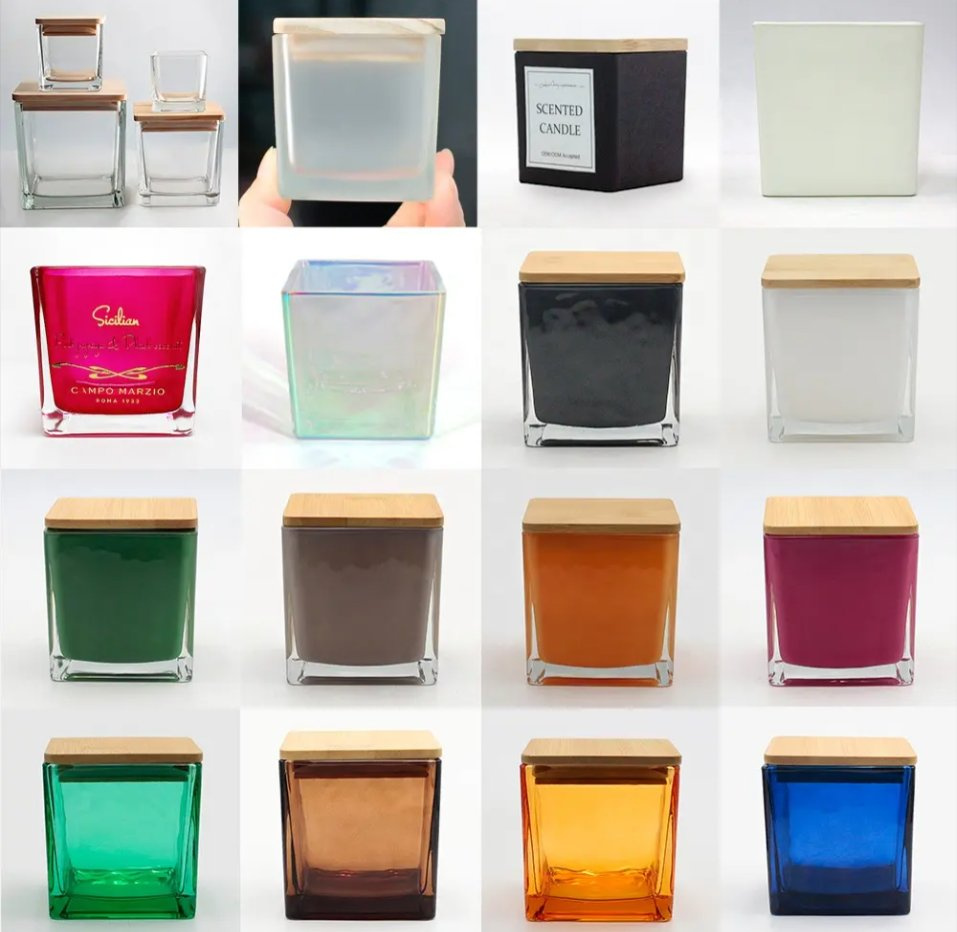 in Stock 240ml Clear Square Candle Jar with Bamboo Lid Glass Transparent Simple Aromatherapy Candle Cup Square Candle Holder Jar