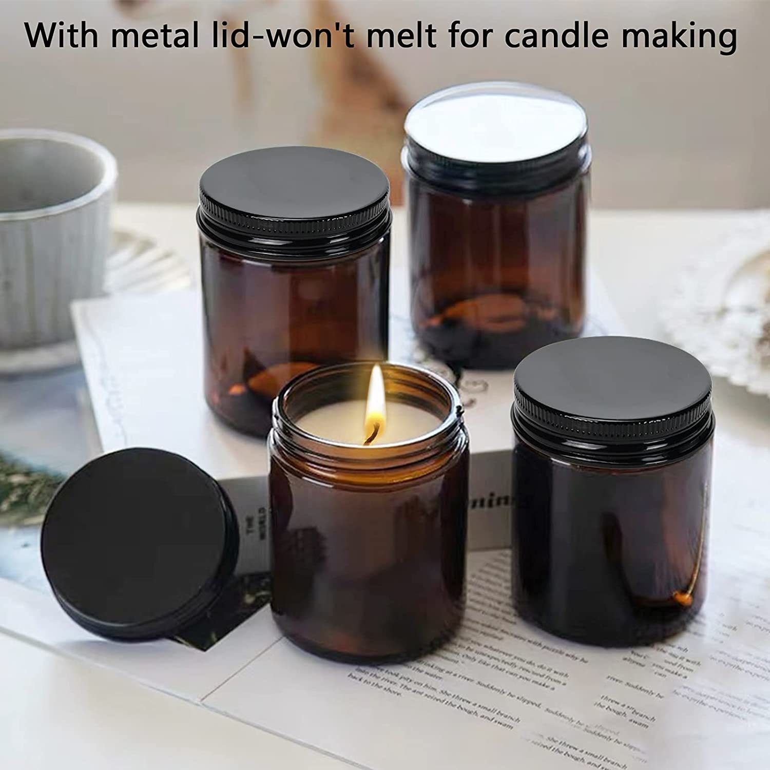 in Stock Candle Container Empty Round Amber Glass Candle Jar Candle Holder with Black Aluminum Metal Lid and Boxes Packaging