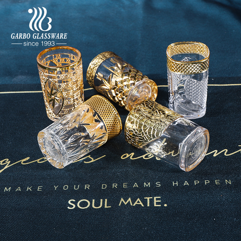 Morocco 6oz Tea Glass Tumbler Golden Luxury Juice Milk Coffee Glass Cup Coffee Glass Tumbler Engraved Glassware