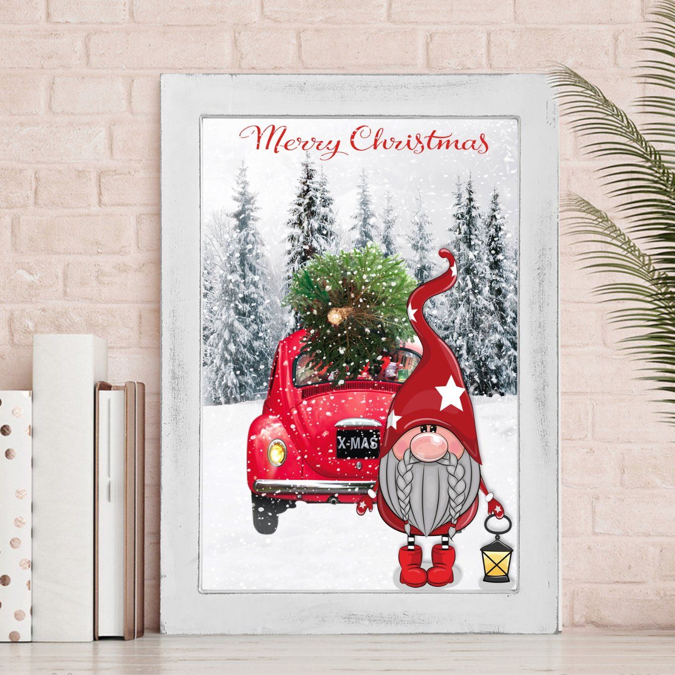 Wood Frame LED Lights Christmas Wall Art Canvas Painting Nordic Posters and Printed Wall Pictures Suitable for Living Room Decor