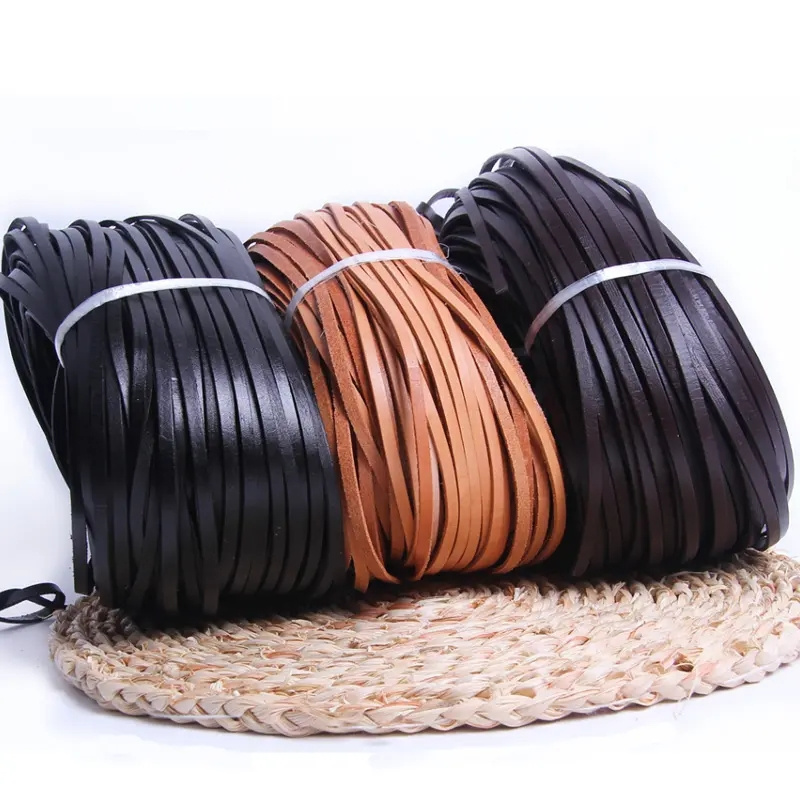 3mm 5mm 10mm Width Genuine Cowhide Plain Flat Leather for Jewelry Making