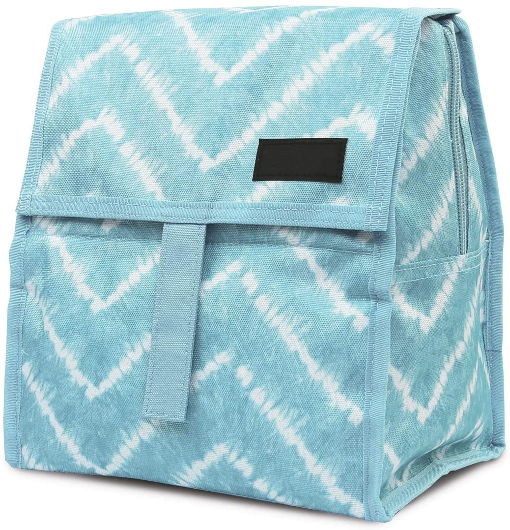 Aqua Tie Dye Pattern Printing Cooler Bag with Zip Closure Collapsible Nontoxic Poly Canvas Lunch Bag