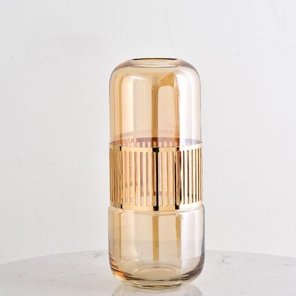 Best Quality Glass Vase Golden Iron Art Glass Vase for Living Room