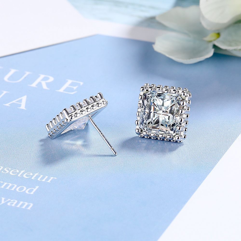 Versatile Manufacturer Wholesale Jewelry Square Zircon Exquisite Earrings Light Luxury Hollow Carved Sugar Cube Earrings Daily