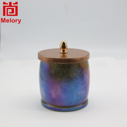 Metallic Painted Round Belly Glass Candle Holder with Metal Lid